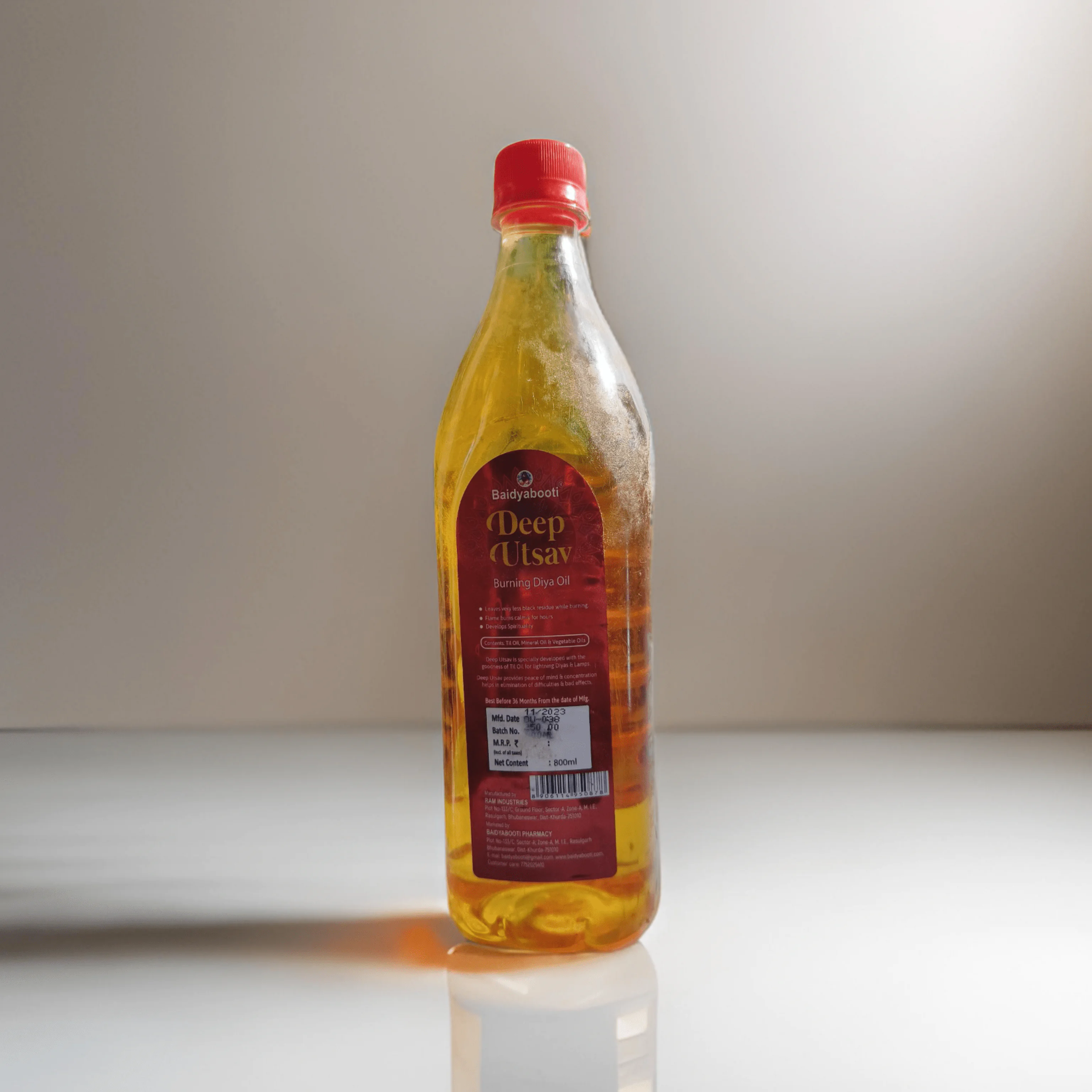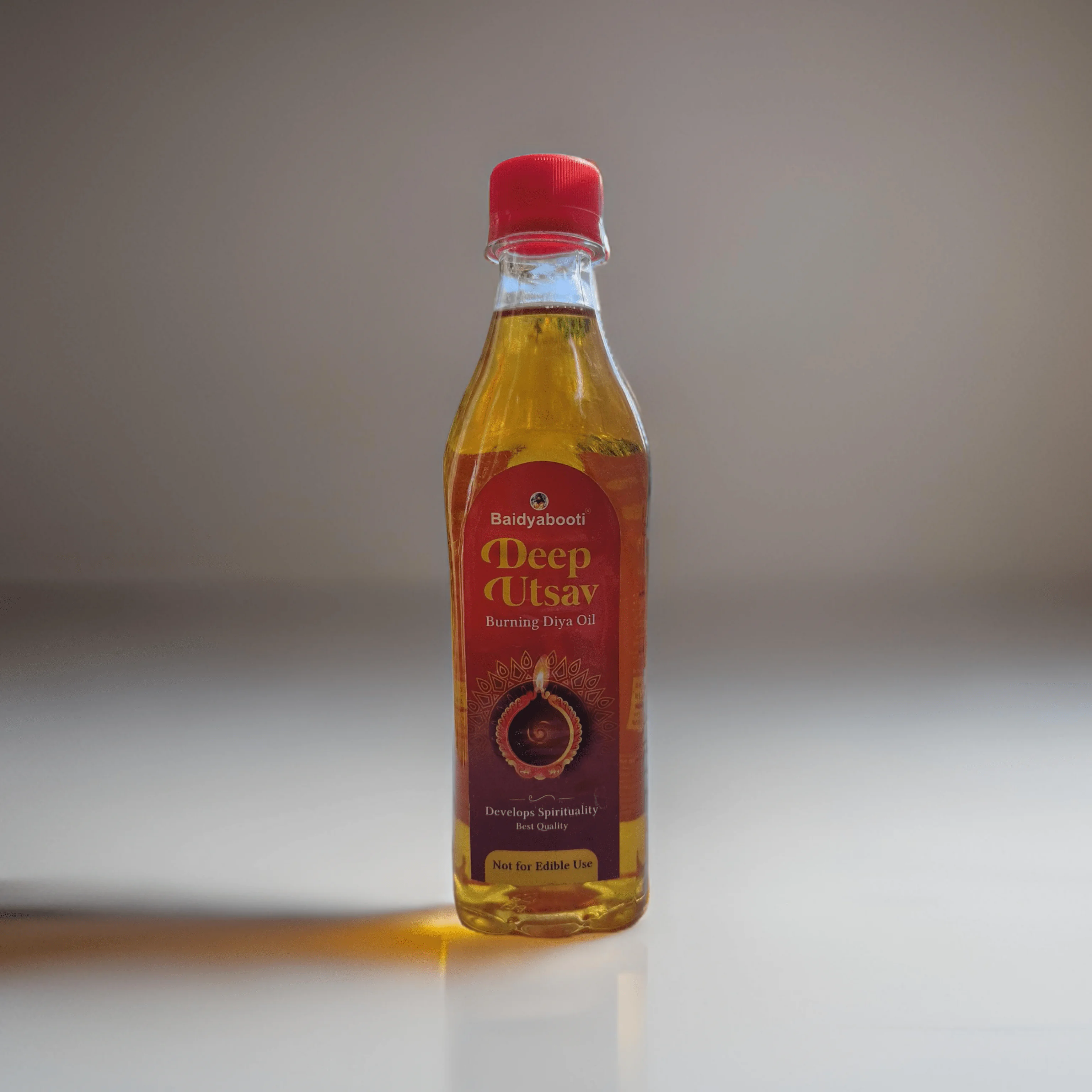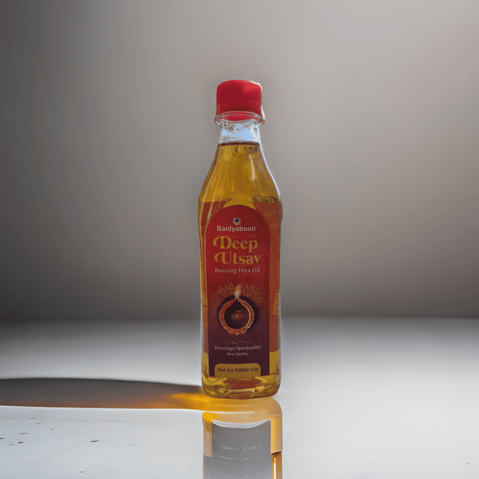 Experience the divine glow of Deep Utsav Burning Diya Oil. Crafted from pure sesame seeds, this oil burns cleanly and brightly, casting a sacred light that illuminates your spiritual path. Ideal for lighting diyas during prayers, festivals, and special occasions, this oil creates a serene and peaceful ambiance. Enhance your spiritual practices with Deep Utsav Burning Diya Oil and connect with the divine through its warm and inviting glow.